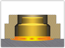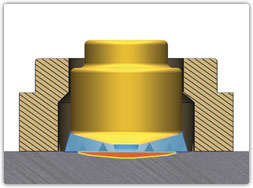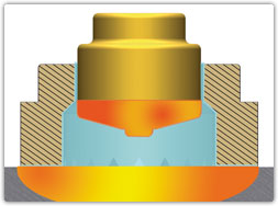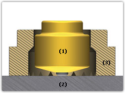 | Элемент GX (1) фиксируется на защищаемой металлической поверхности (2). Для защиты предусмотрено керамическое кольцо (3). | Под воздействием магнитного поля GX слегка приподнимается, возникает электрическая дуга. | Благодаря которой GX элемент сплавляется с металлической поверхностью. |
